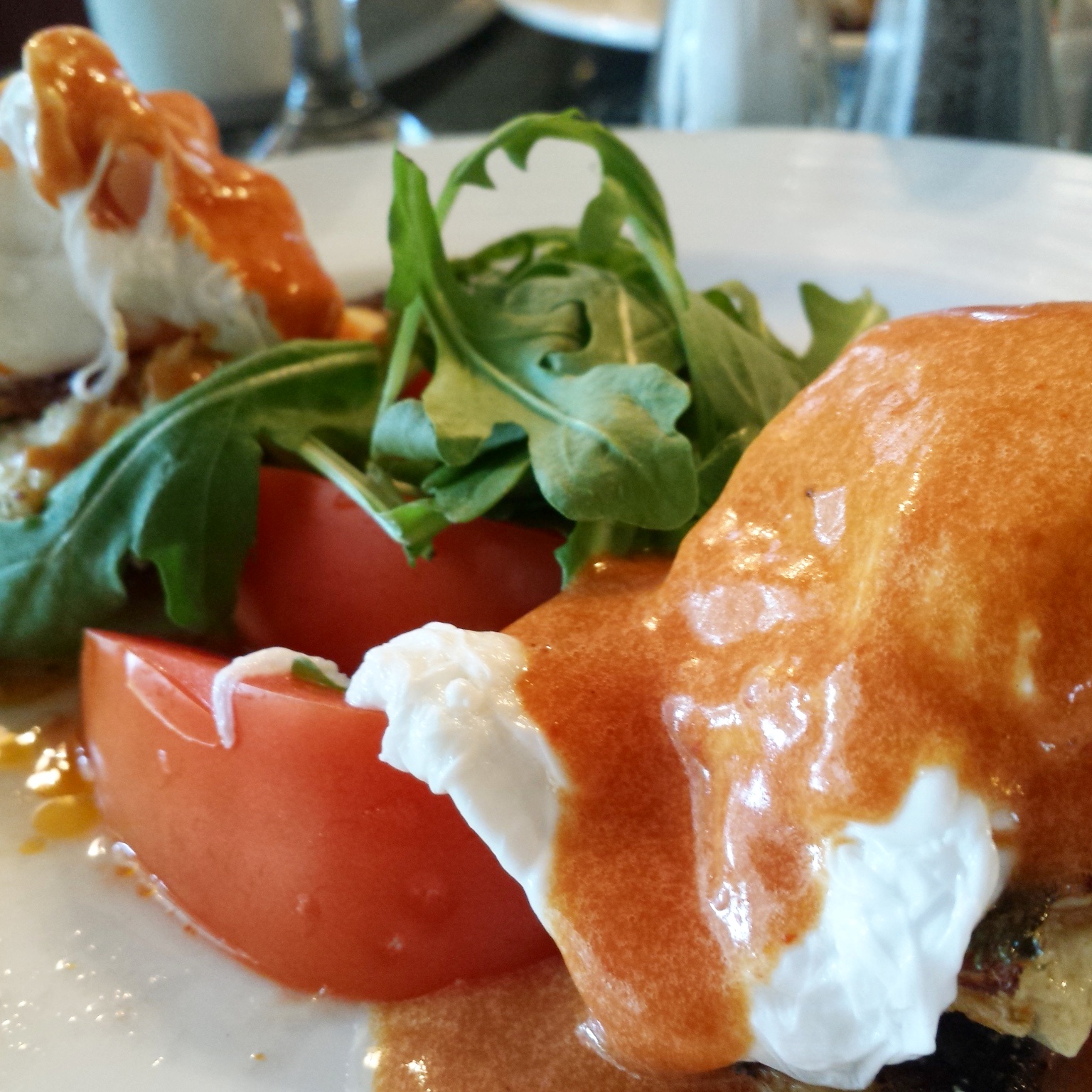 The Crab Cake Benedict is, as you might have guessed, an Eggs Benedict with crab instead of Canadian bacon. This dish is often simply referred to as a Maryland Eggs Benedict, but THIS dish goes a bit further: everything is different except the poached eggs.