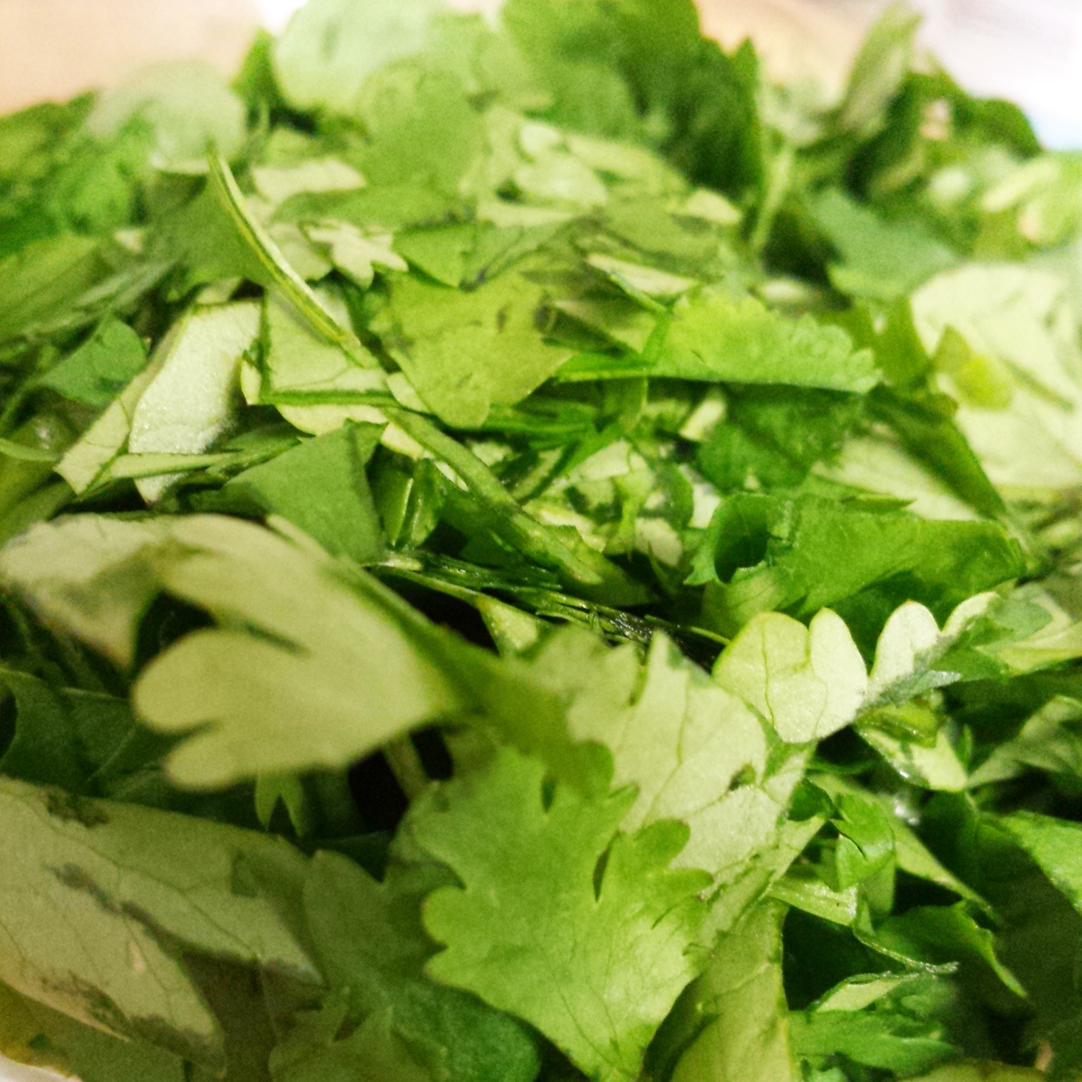 The process is just about the same, except easier. First, chop up those veggies and herbs: