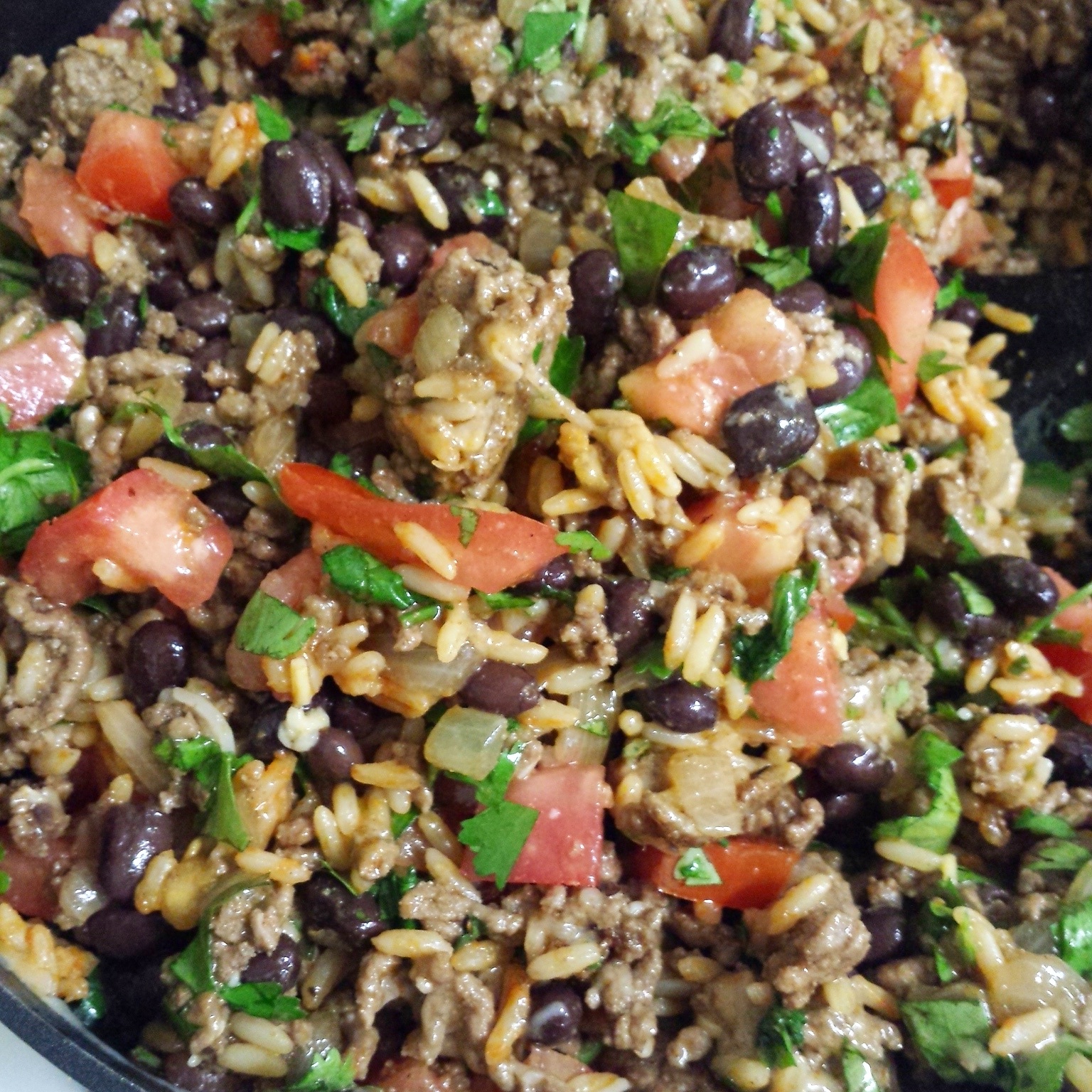 Preheat oven to 400. Saute onions in oil with pinch of salt on medium high for five minutes. Add ground beef and brown for five to seven minutes. Add taco seasoning and mix. Turn off heat. Add cilantro, tomato, cheese, black beans, and rice and mix. Stuff peppers. Cover with cheese. Cover baking tray with foil and cook for 35 minutes. Uncover, then cook for additional 10-15 minutes.