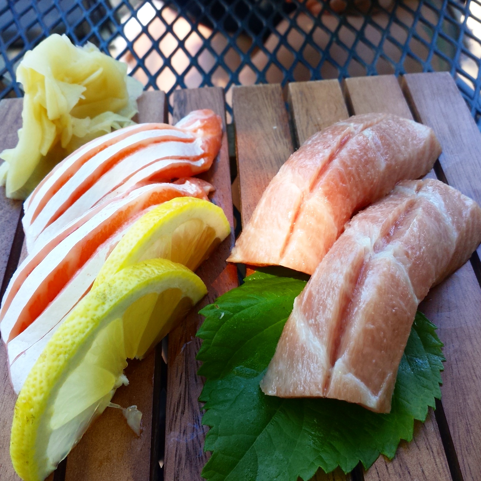 I started off with some fatty tuna and fatty salmon nigiri: