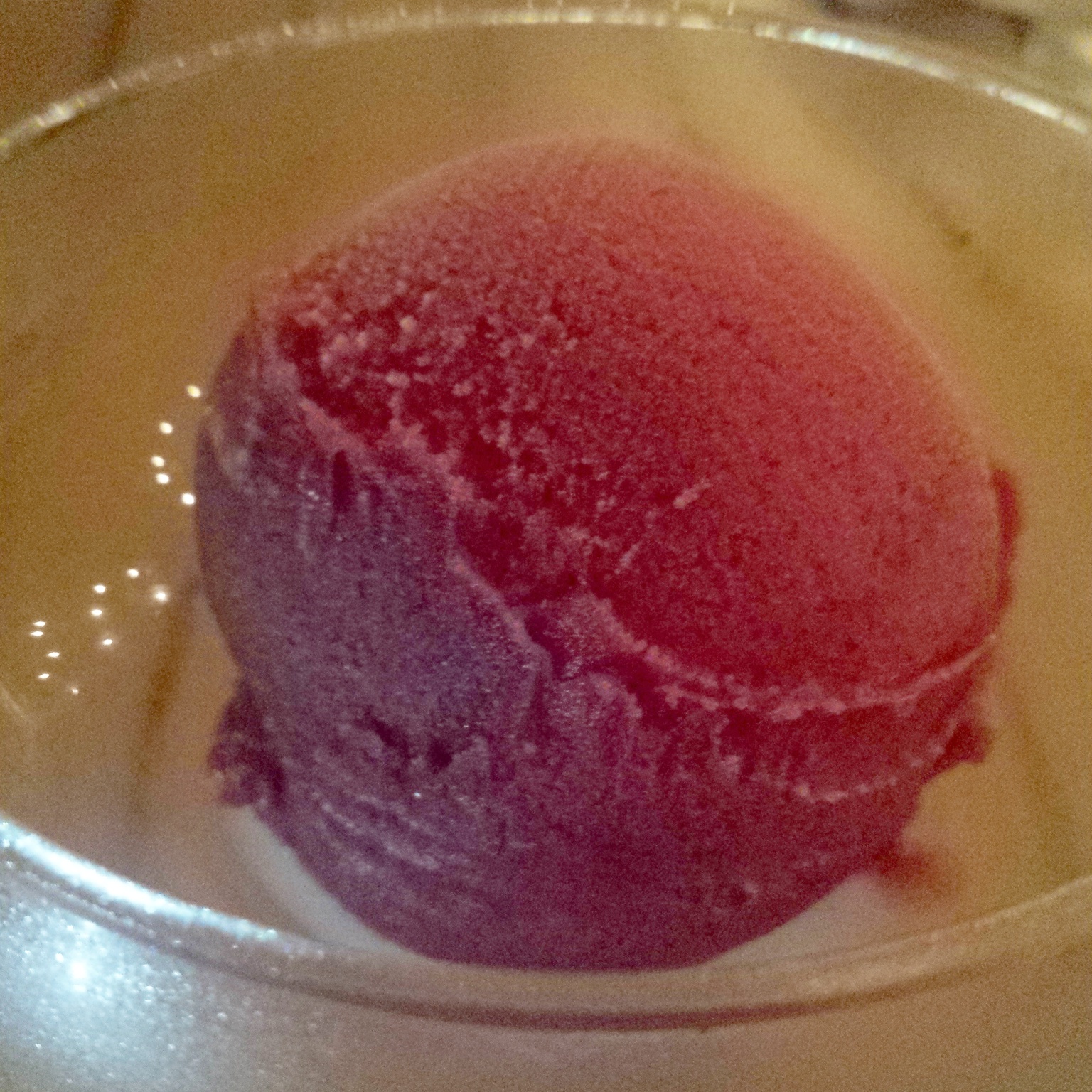 I finished off the meal with a little scoop of cabernet blackberry sorbet. You could taste both flavors. A very “deep” sorbet, for sure. It probably would have gone on to write poetry about its transient little life had I not inhaled it.