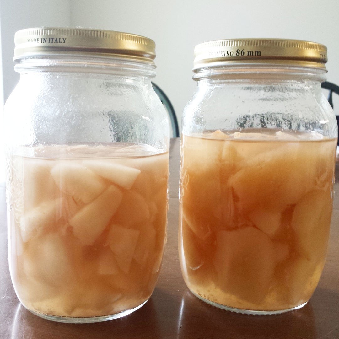 They look like that. The peaches have lost their bright color and the liquid is cloudy. Not the prettiest, I suppose, but I have a feeling it won’t matter after I pop these babies open.